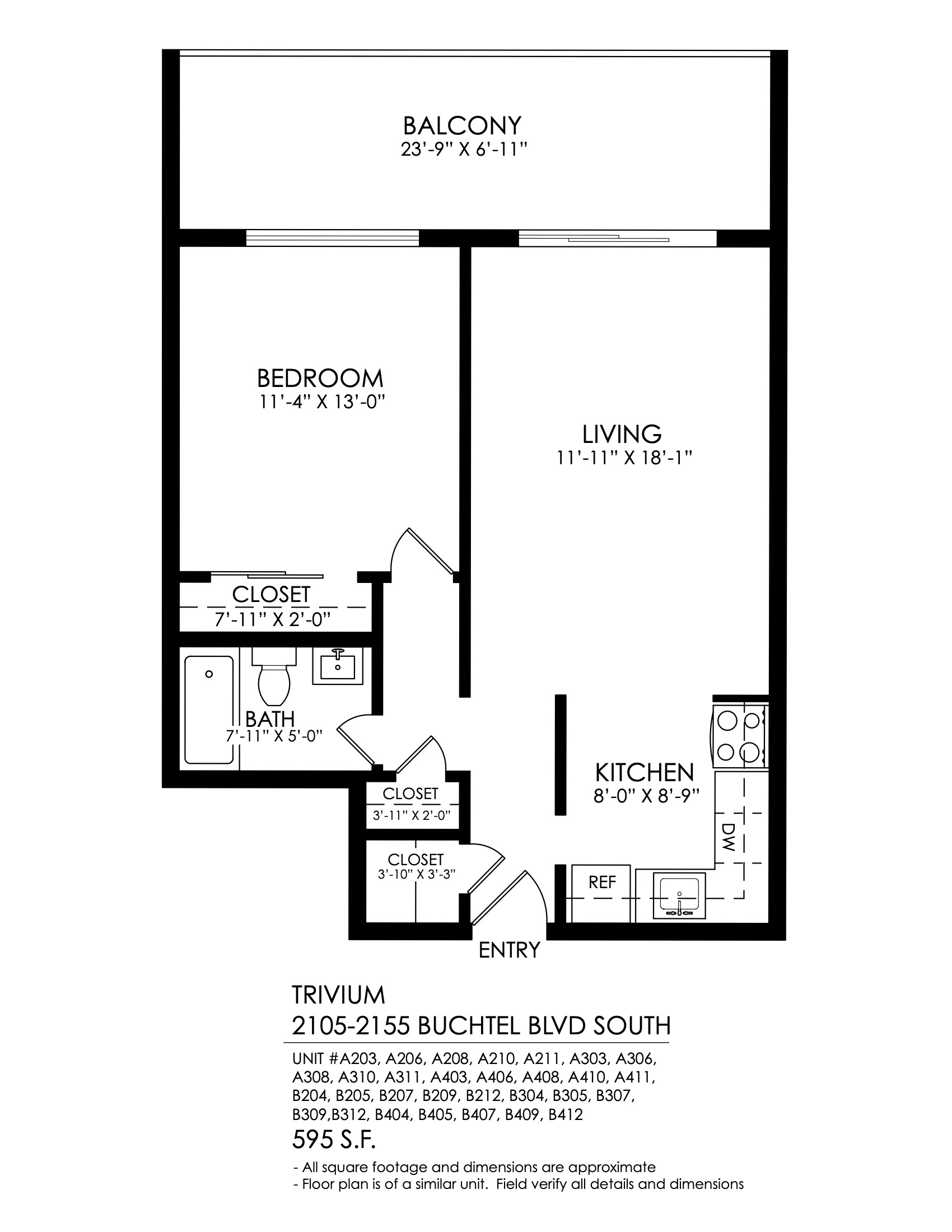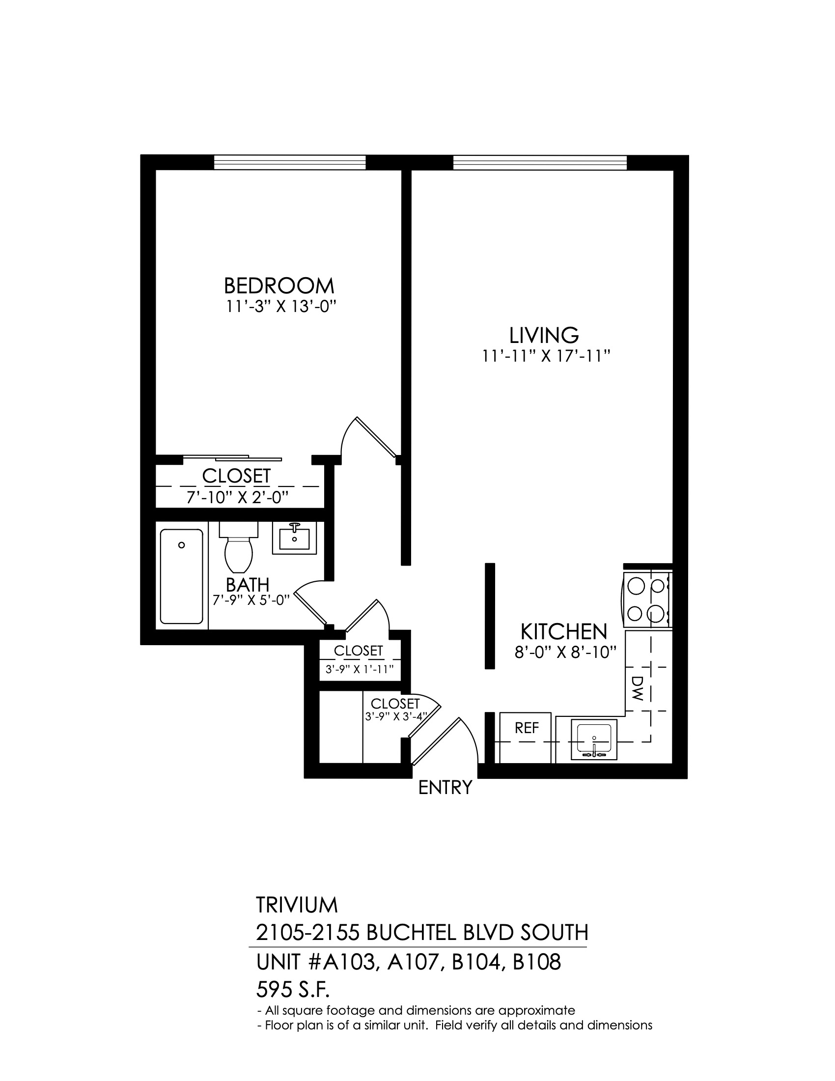 1 Bath 595 sqft.