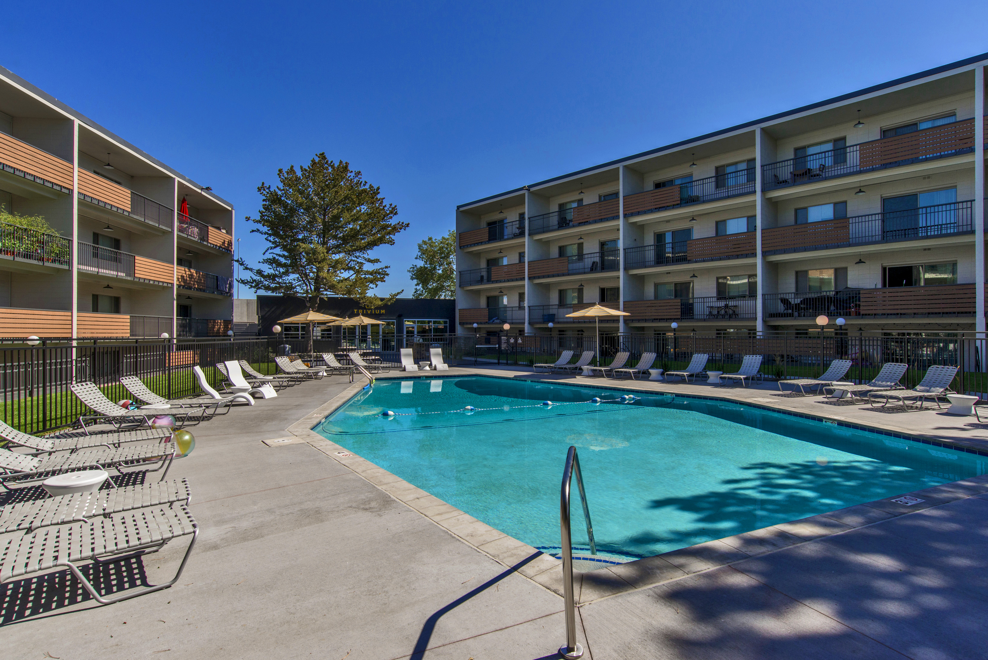 Now offering up to one month free plus a $500 look & lease special, Trivium is pet-friendly in the heart of Denver's University of Denver neighborhood. Built in 1961, this charming property features studio, one-bedroom, and two-bedroom apartments with stainless steel appliances*, dishwashers*, wood-style flooring*, and large private patios or balconies. Residents enjoy an unbeatable location with easy access to the I-25 freeway and are just a short walk to the DU Light Rail Station. The neighborhood also offers excellent dining options, including the long-loved Jerusalem Restaurant, Jelly Cafe, and Snarf's. Community amenities at Trivium include a pool with BBQ station and a welcoming resident lounge featuring a large-screen TV, a kitchenette, a fireplace, games, and vending machines. Uncovered and carport parking are also available. Schedule your tour today and experience the ideal blend of timeless character and modern comfort at Trivium.