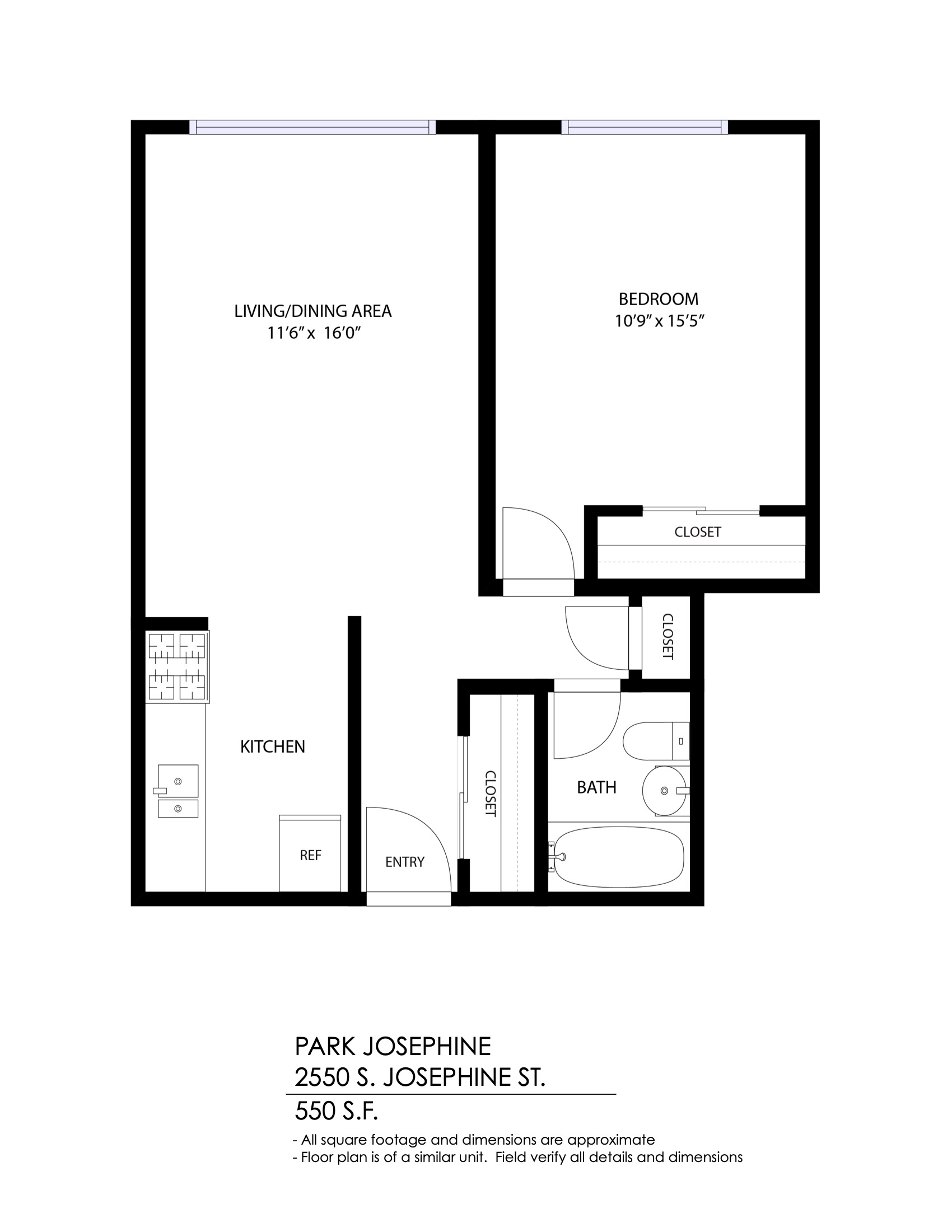1 Bath 550 sqft.