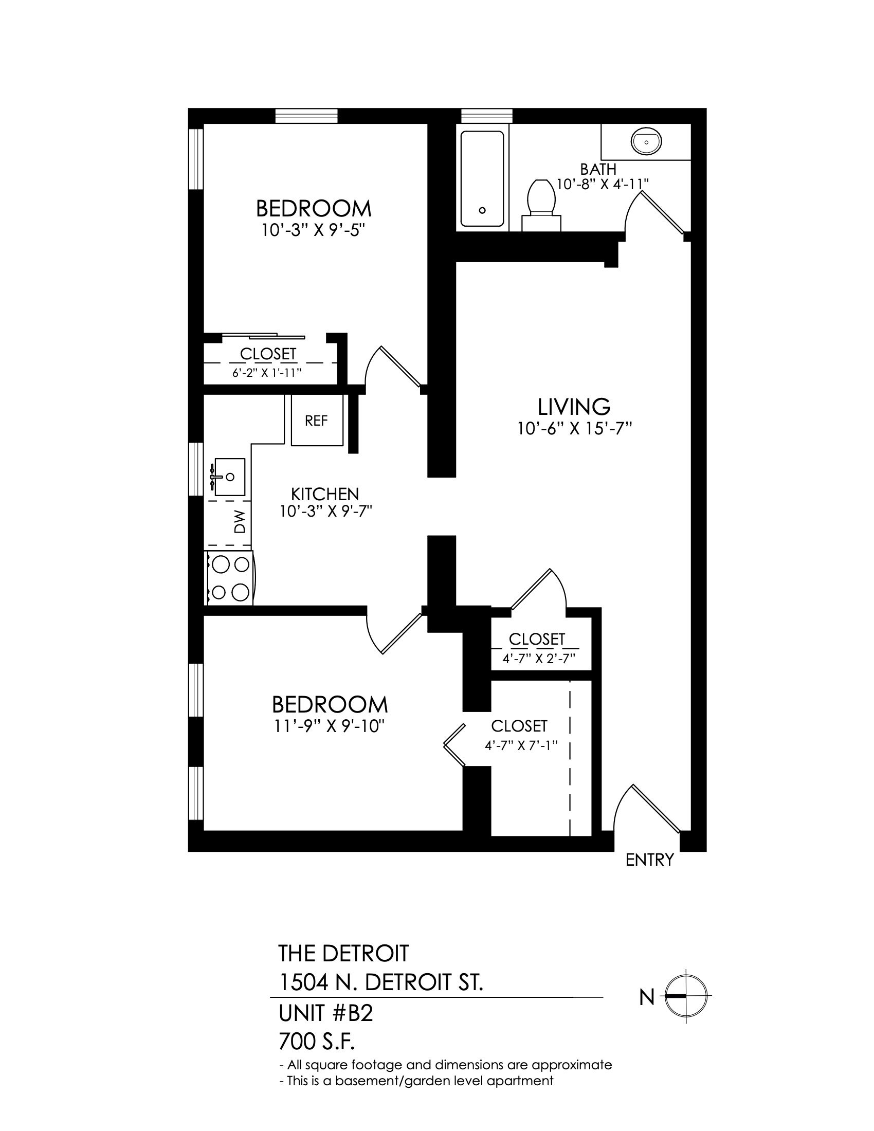 1 Bath 700 sqft.